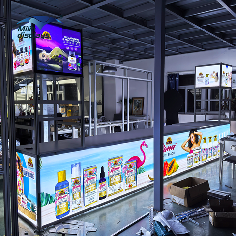 Menindisplays fiera espositivo leggero metallo LED Lightbox espositore supermercato cosmetici scaffali dei negozi