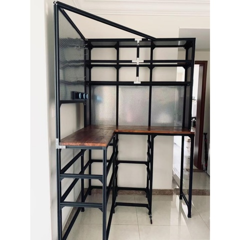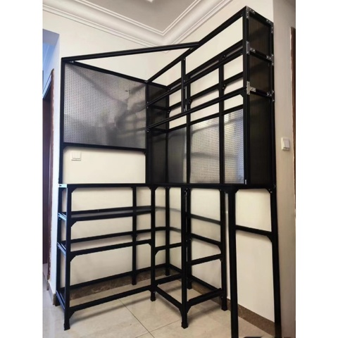 Atelier de mise à niveau d'étagère en panneau perforé de qualité industrielle Utilisation longue durée Système de rayonnage sur mesure en aluminium de couleur noire